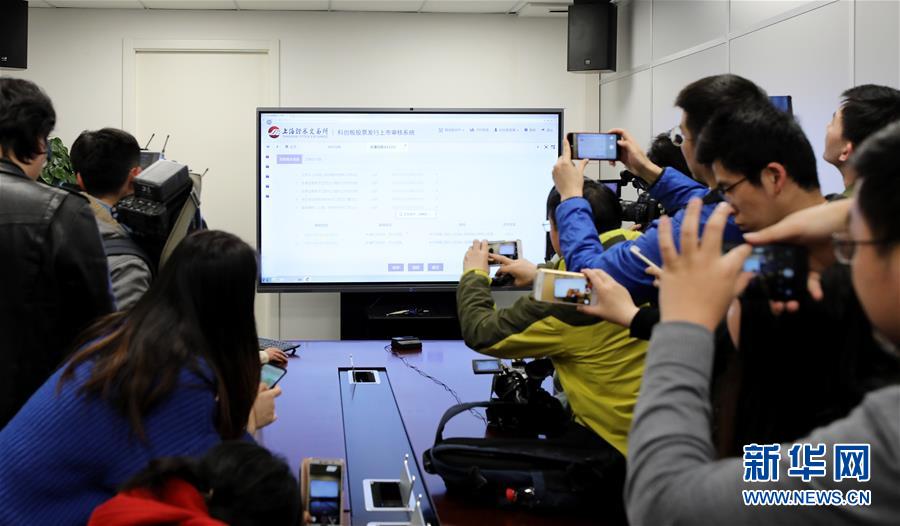 媒體記者在上海證券交易所的科創(chuàng)板上市審核中心會(huì)議室內(nèi)觀看上市審核系統(tǒng)操作流程演示(3月22日攝)。新華社記者 方喆 攝