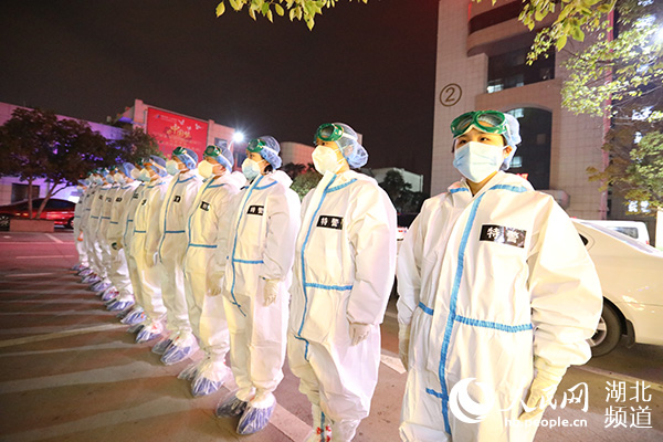 女子抗疫先鋒隊(duì)換好衣服,集結(jié)完畢準(zhǔn)備進(jìn)入隔離區(qū)(襄陽(yáng)特警供圖)