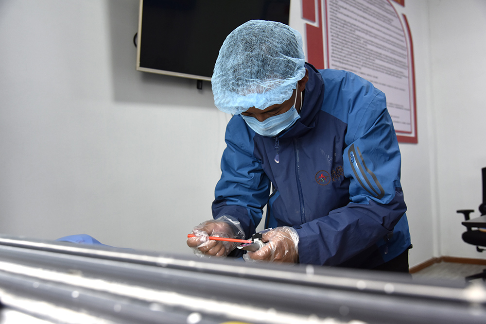 圖為那曲市聶榮縣色慶鄉(xiāng)江倉村村民西熱加措正在色慶鄉(xiāng)雜瑪多種經(jīng)營合作聯(lián)合社里忙碌 攝影:王媛媛