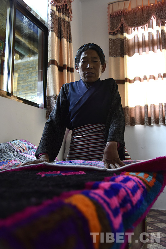 “我平時(shí)就待在家里,誰(shuí)想學(xué)編織,就來(lái)我家?!睆?990年開(kāi)始,次仁宗巴把自己所會(huì)的編織技藝傾囊相授。40名附近村民靠著編織技藝,為家庭增收。