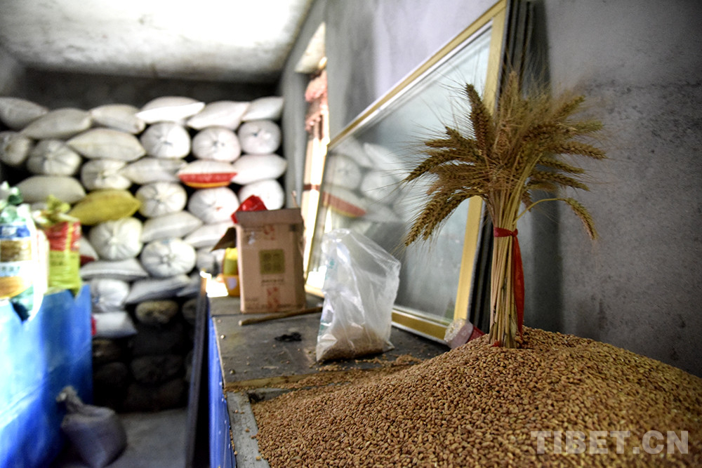 2007年,家里蓋了新房子。520平方米、19間的新房里,客廳、臥室、廚房被次仁宗巴打理得一塵不染,糧食儲(chǔ)藏間里,地里的收獲盡數(shù)歸倉(cāng)。