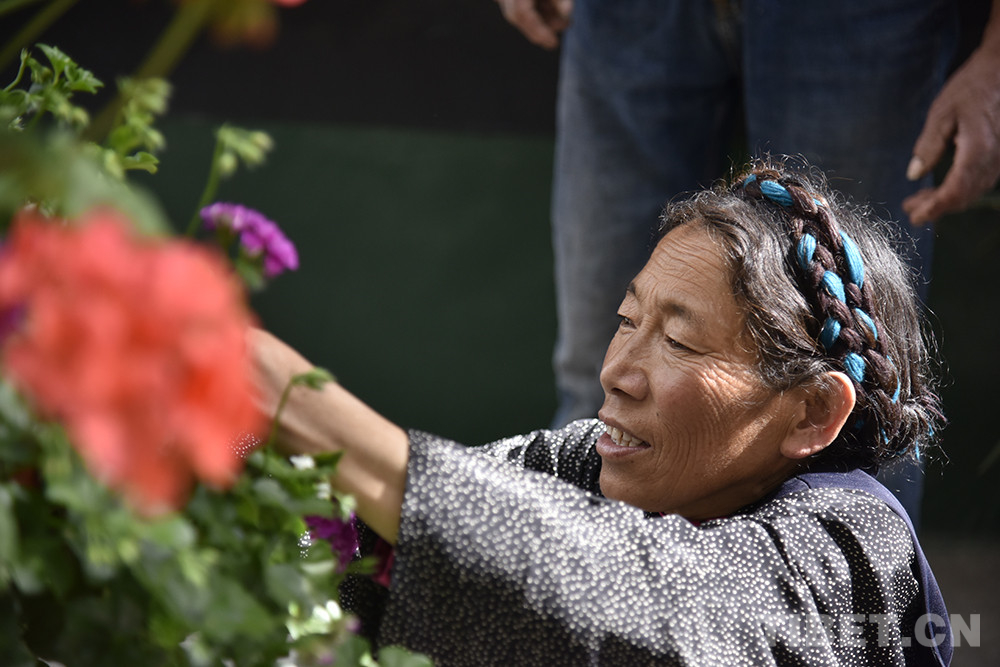 中國(guó)西藏網(wǎng)訊 水泥硬化的院子里,次仁宗巴看到前方地面有片樹(shù)葉。她趕緊彎腰拾撿,丟到一旁,繁花似錦的小院重歸干凈整潔。
