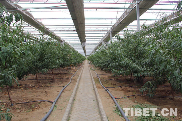 在高原上栽好一棵桃樹需要傾注更多的心血。經(jīng)過大棚的中控室,王榮華說:“這里晝夜溫差大、紫外線強,冬天的時候還要澆凍水、拉膜蓋土、給樹打防凍液,在高原發(fā)展果樹種植困難不少。不同于內(nèi)地的桃樹,在這里快4年了,露天的桃樹只長高兩三米。”說到這里,他不由感慨科技種植的力量:“大棚里的桃樹一年就長到3米多高,并且掛果了。回想2017年時,露天種下的桃樹只有手指粗細,如今長勢這么好,真有點不可思議。”