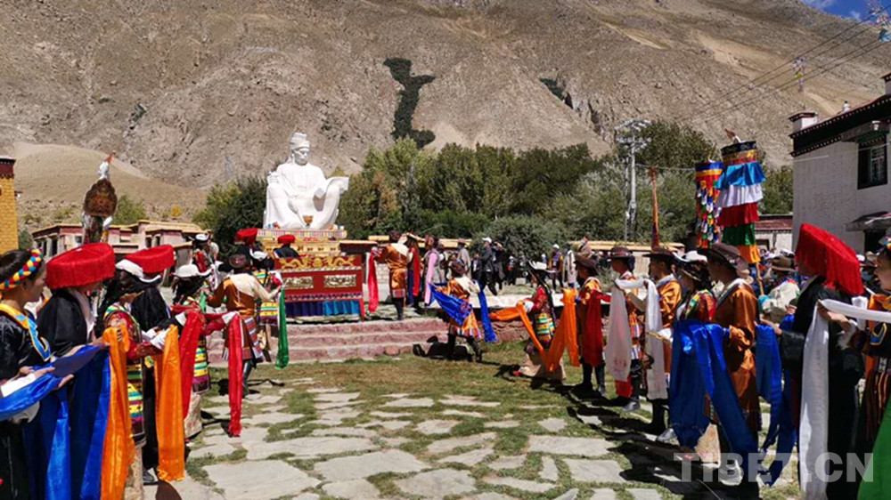 圖為藏族群眾為吞彌?桑布扎塑像敬獻哈達 攝影:王茜