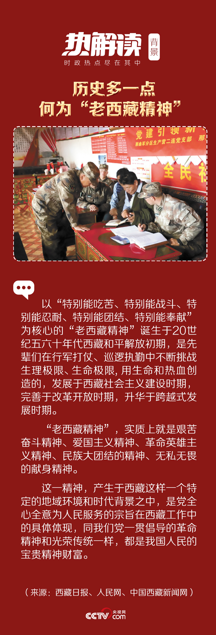 那些背著背包以雙腳征服14座海拔5000多米險(xiǎn)峻雪山的中國人民解放軍將士,用軍魂熔鑄“老西藏精神”;寫出“冰山愈冷情愈熱,耿耿忠心照雪山”詩句的援藏干部孔繁森,用生命踐行“老西藏精神”;滔滔江河上搭金橋、重重險(xiǎn)山間辟大道,迢迢天路無言訴說著“老西藏精神”;“玉麥每一個(gè)人都是祖國的坐標(biāo)”,在西藏長達(dá)4000多公里的邊境線上,數(shù)不清的黨員干部默默踐行傳承著“老西藏精神”……