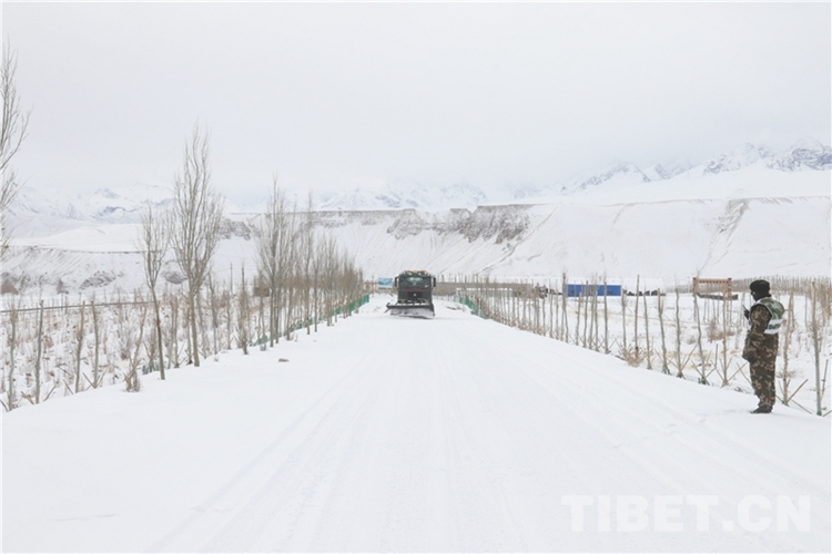在持續(xù)降雪的西藏自治區(qū)西部地區(qū),武警官兵在確保道路交通不中斷的情況下,通過連續(xù)2天奮戰(zhàn),積雪路段冰雪已全部被清除,有效確保了過往司乘人員安全通行。(中國西藏網(wǎng) 通訊員/陸文凱 董尼么太)