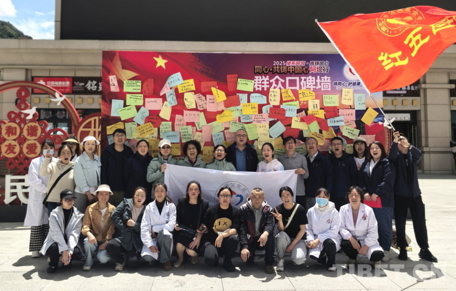 圖為“同心·共鑄中國(guó)心”2025阿壩行大型健康公益綜合服務(wù)活動(dòng)四川省阿壩州首府馬爾康市義診點(diǎn)的醫(yī)療專家們義診結(jié)束后在群眾口碑墻前留影 攝影:吉文革
