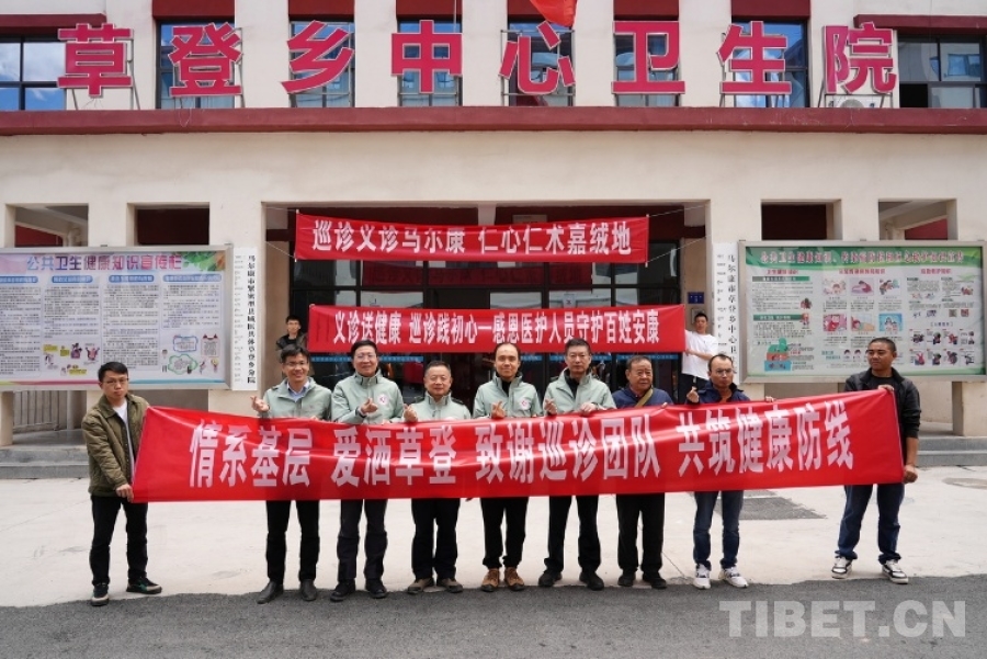 圖為草登鄉(xiāng)義診點的醫(yī)療專家們合影 攝影:喇應強