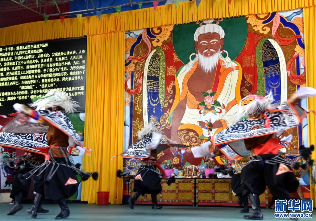 傳說,明代著名建筑師、藏戲的開山鼻祖唐東杰布為了給西藏建橋,組建藏戲班子四處募集資金,途中來到現(xiàn)在的西藏山南市乃東區(qū)昌珠鎮(zhèn)扎西曲登社區(qū),在此排練了一種新的藏戲表演方式。這便是最初的雅礱扎西雪巴藏戲,扎西曲登社區(qū)也因此被稱為“藏戲第一村”。