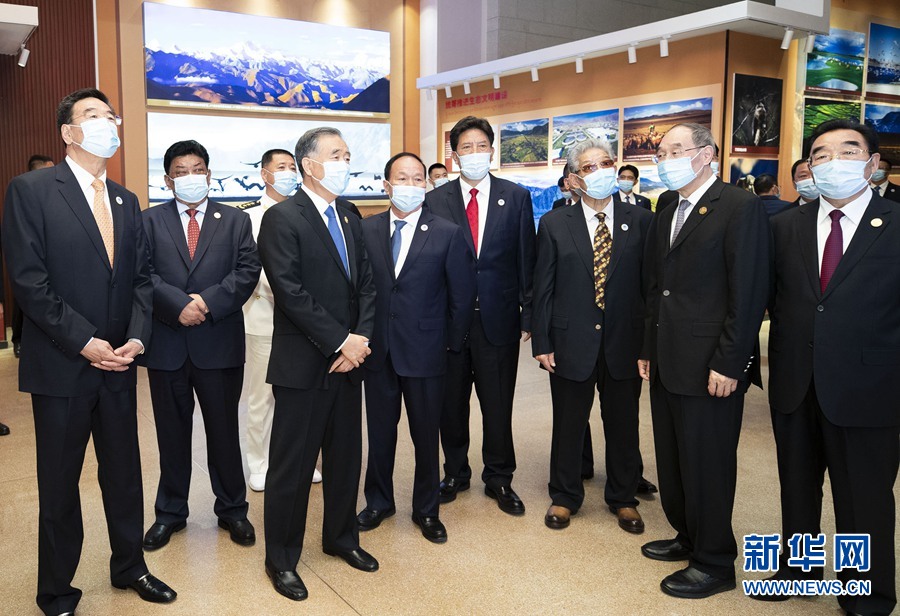 8月18日,以中共中央政治局常委、全國政協(xié)主席汪洋為團(tuán)長的中央代表團(tuán)飛抵拉薩,出席西藏和平解放70周年慶?;顒?dòng)。這是汪洋率代表團(tuán)全體成員來到西藏博物館,出席《黨的光輝照邊疆 錦繡高原譜華章——西藏和平解放70周年成就展》開幕式并參觀展覽。新華社記者 黃敬文 攝