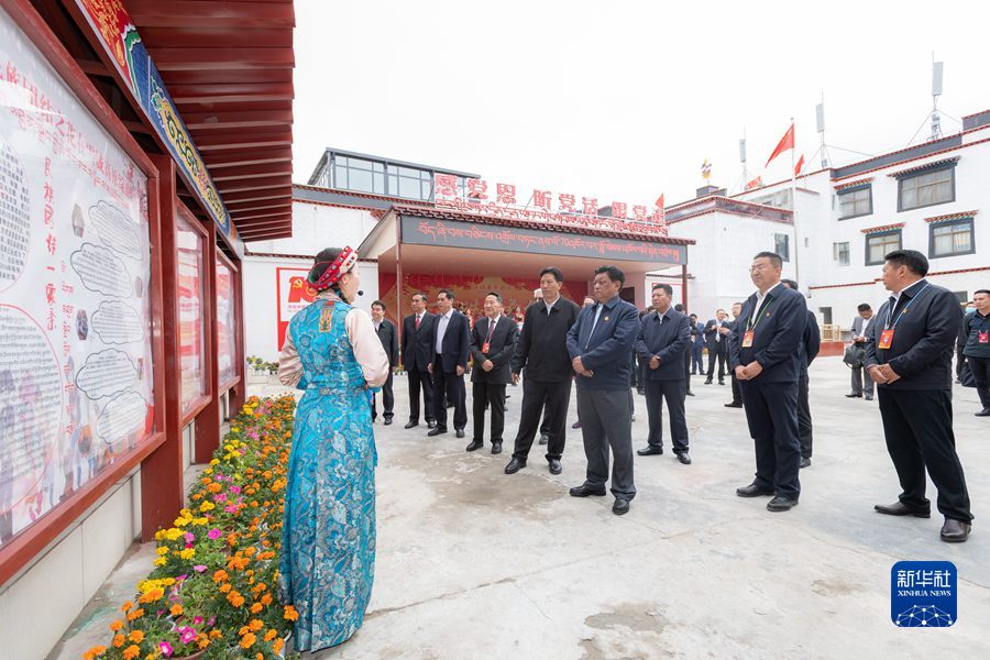 8月20日,中央代表團(tuán)山南、日喀則分團(tuán)帶著以習(xí)近平同志為核心的黨中央的深切關(guān)懷和全國(guó)人民的深情祝福,分別看望慰問當(dāng)?shù)馗髯甯鹘绺刹咳罕?。這是全國(guó)人大常委會(huì)副委員長(zhǎng)、中央代表團(tuán)副團(tuán)長(zhǎng)白瑪赤林率日喀則分團(tuán)來到日喀則桑珠孜區(qū)城北街道辦事處江洛康薩社區(qū),視察民族團(tuán)結(jié)創(chuàng)建和新時(shí)代文明實(shí)踐中心建設(shè)工作情況。新華社記者 翟健嵐 攝