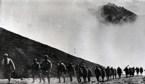 圖為進(jìn)軍西藏途中的十八軍官兵。圖片來(lái)源:人民網(wǎng)