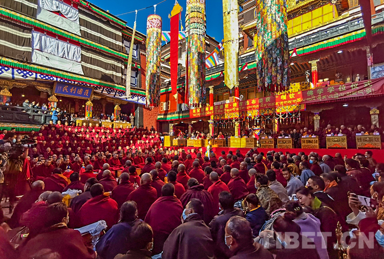中央統(tǒng)戰(zhàn)部、國家宗教事務(wù)局賀信表示,十一世班禪自1995年坐床以來,在黨中央的親切關(guān)懷下,勤學(xué)苦修、廣聞深思,解行并進(jìn),宗教學(xué)識日益精深。特別是近日在扎什倫布寺辯經(jīng)法會上通過嚴(yán)格考試和答辯考取最高的“嘎欽”學(xué)位,標(biāo)志著十一世班禪在宗教修為上取得重要成果,也充分說明了黨的宗教信仰自由政策在西藏得到全面貫徹落實。祝愿十一世班禪牢記習(xí)近平總書記的諄諄教導(dǎo),繼承和發(fā)揚歷代班禪愛國愛教、護(hù)國利民的光榮傳統(tǒng),繼續(xù)刻苦學(xué)習(xí)、潛心修行,輔弼社會、饒益眾生、莊嚴(yán)國土、利樂有情,在維護(hù)祖國統(tǒng)一和民族團(tuán)結(jié)、堅持藏傳佛教中國化方向、促進(jìn)藏傳佛教與社會主義社會相適應(yīng)上做出新的貢獻(xiàn)。