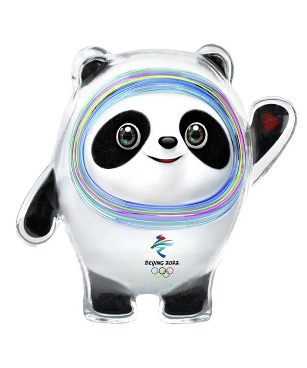 以熊貓為原型進(jìn)行設(shè)計(jì)創(chuàng)作。將熊貓形象與富有超能量的冰晶外殼相結(jié)合,體現(xiàn)了冬季冰雪運(yùn)動和現(xiàn)代科技特點(diǎn)。頭部外殼造型取自冰雪運(yùn)動頭盔,裝飾彩色光環(huán),其靈感源自于北京冬奧會的國家速滑館——“冰絲帶”,流動的明亮色彩線條象征著冰雪運(yùn)動的賽道和5G高科技;左手掌心的心形圖案,代表著主辦國對全世界朋友的熱情歡迎。整體形象酷似航天員,寓意創(chuàng)造非凡、探索未來,體現(xiàn)了追求卓越、引領(lǐng)時代,以及面向未來的無限可能。