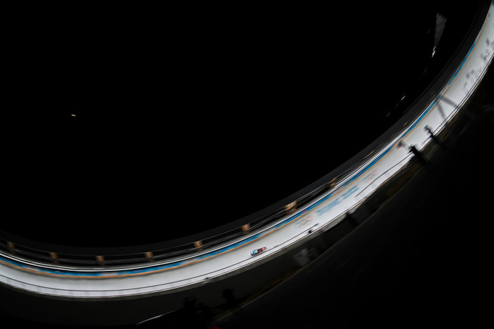 2月9日,中國選手黃葉波和彭俊越在北京2022年冬奧會雙人雪橇項目比賽中。新華社記者孫非攝