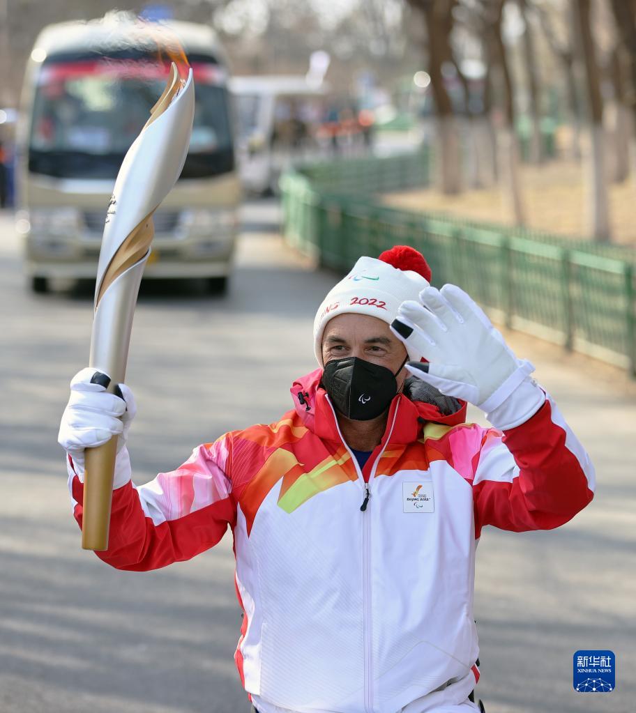 3月3日,火炬手國際殘奧委會(huì)副主席杜安·卡勒在傳遞火炬。新華社記者 杜瀟逸 攝