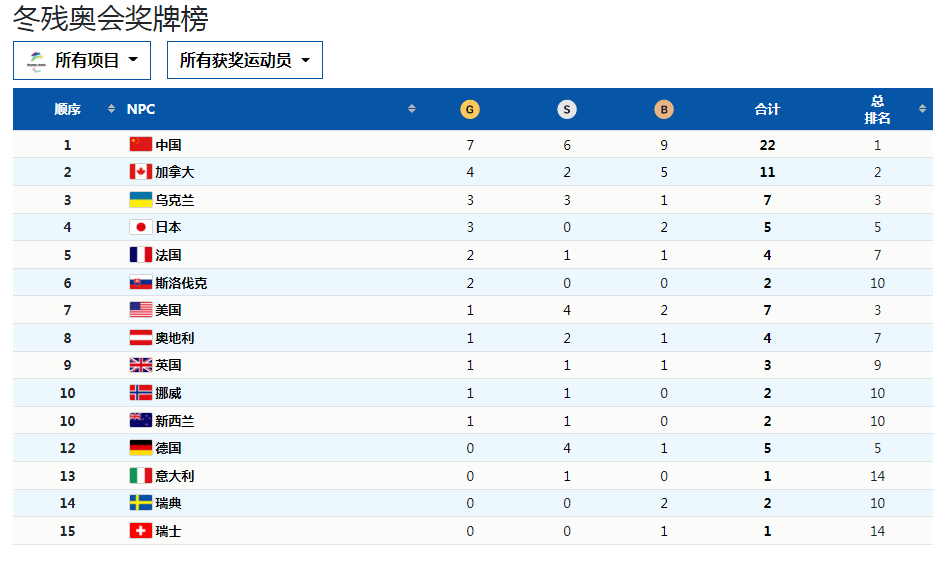 暫列獎牌榜第一