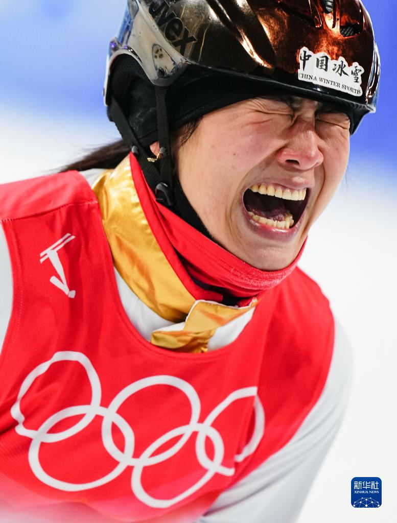 2月14日,中國選手徐夢(mèng)桃在比賽中慶祝。新華社記者 許暢 攝