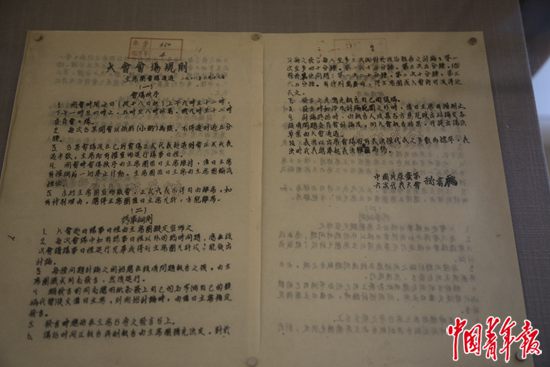展廳第二部分“中共六大的籌備與召開”中展出的大會(huì)會(huì)場(chǎng)規(guī)則文件。中青報(bào)·中青網(wǎng)駐俄羅斯記者 張健/攝