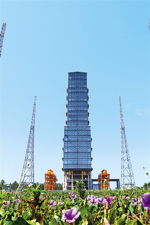海南文昌航天發(fā)射場(chǎng)的長(zhǎng)征七號(hào)運(yùn)載火箭發(fā)射塔架。 新華社記者 曾 濤攝