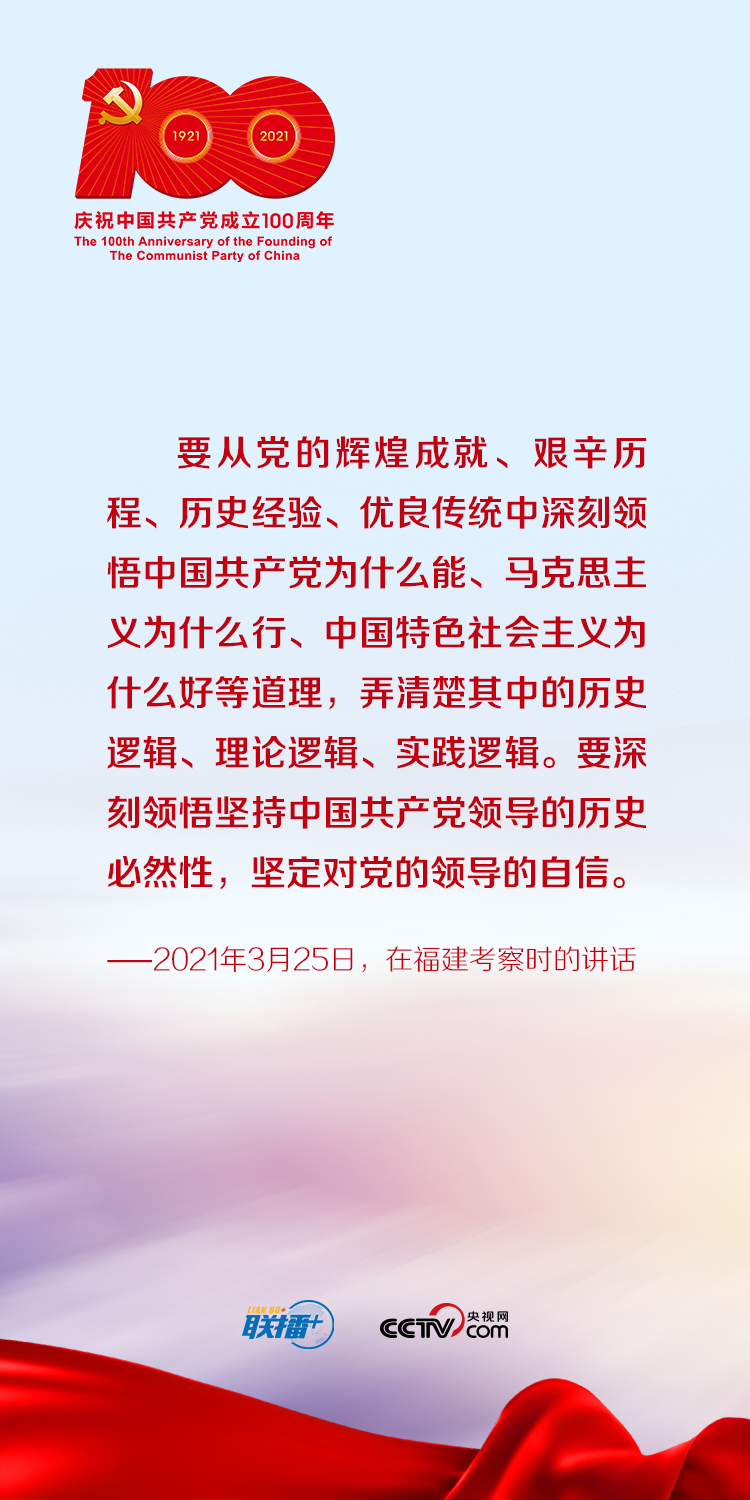 今年是中國共產(chǎn)黨成立100周年。央視網(wǎng)《聯(lián)播+》特梳理總書記關(guān)于知史愛黨的重要論述,與您一起堅定理想信念,不斷增強(qiáng)守初心、擔(dān)使命的思想自覺和行動自覺。