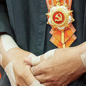 一雙貼滿膏藥的普通勞動者的手,捧起代表黨內(nèi)最高榮譽(yù)的“七一勛章”。