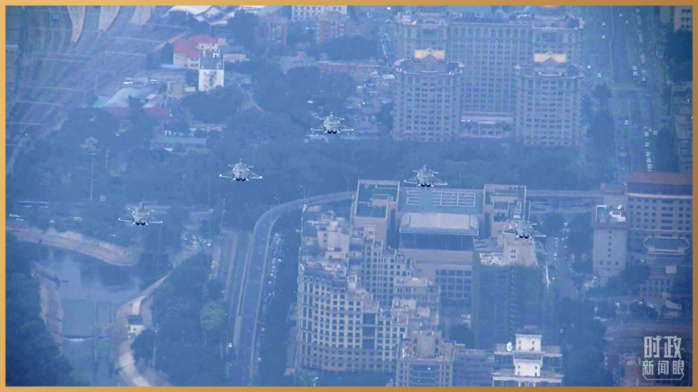 15架殲-20飛機組成3個梯隊,飛過天安門廣場。