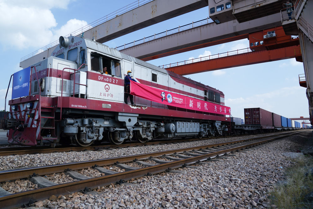 10月29日,首班“中歐班列—進(jìn)博號(hào)”列車抵達(dá)上海。(新華社記者丁汀攝)