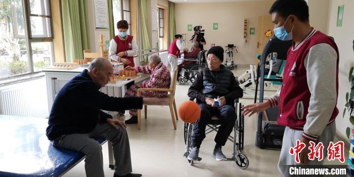 資料圖:護(hù)工正在和老年人進(jìn)行康復(fù)訓(xùn)練。 貴州省民政廳供圖