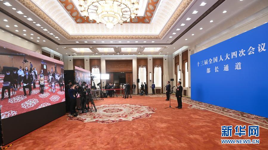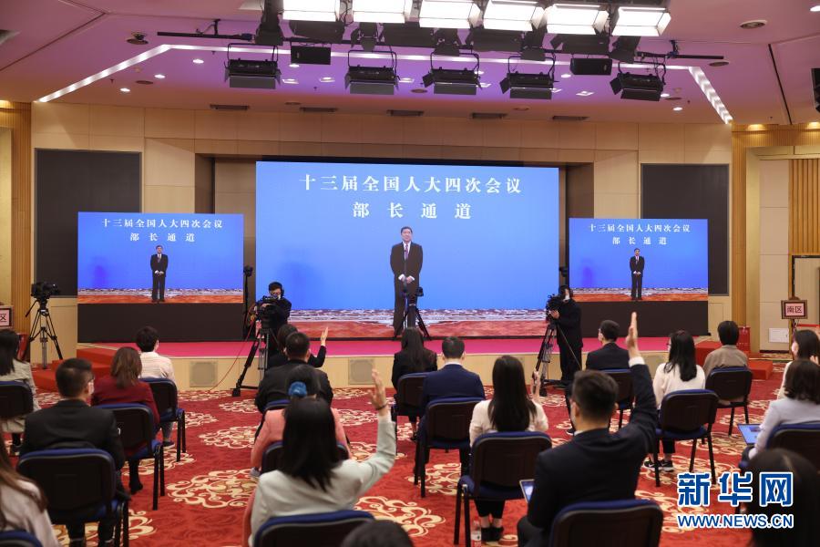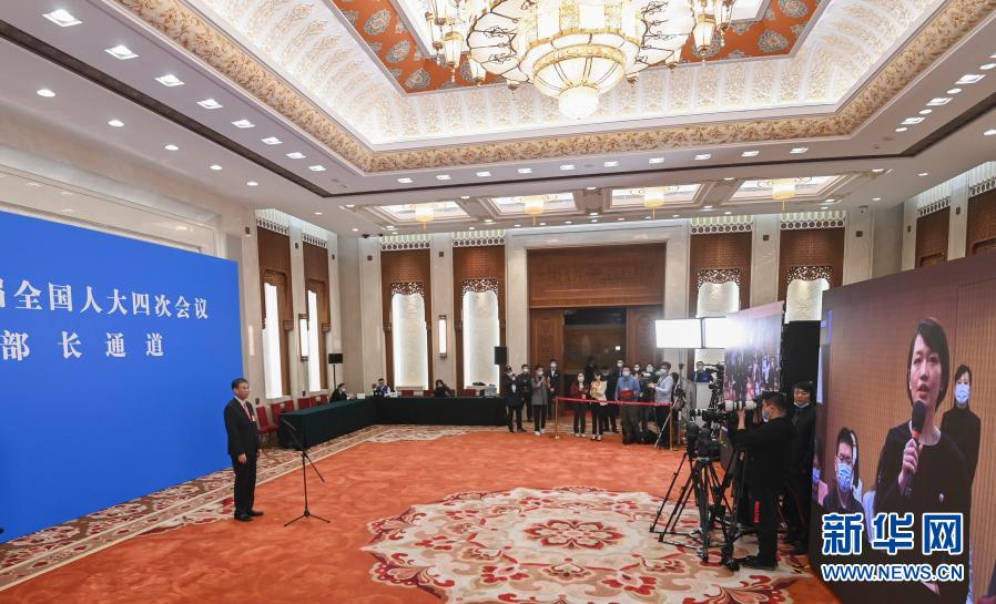 3月5日,第十三屆全國(guó)人民代表大會(huì)第四次會(huì)議舉行首場(chǎng)“部長(zhǎng)通道”采訪活動(dòng)。這是記者在分會(huì)場(chǎng)通過(guò)網(wǎng)絡(luò)視頻方式提問(wèn)。新華社記者 曹燦 攝