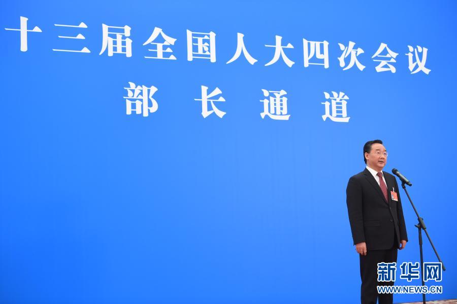 3月5日,第十三屆全國(guó)人民代表大會(huì)第四次會(huì)議舉行首場(chǎng)“部長(zhǎng)通道”采訪活動(dòng)。這是財(cái)政部部長(zhǎng)劉昆通過(guò)網(wǎng)絡(luò)視頻方式接受采訪。新華社記者 陳曄華 攝