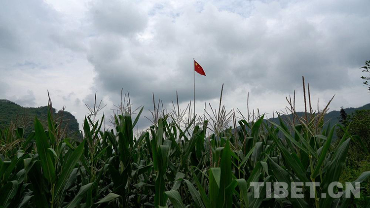 圖為玉米地里飄揚的五星紅旗 攝影:陳浩力