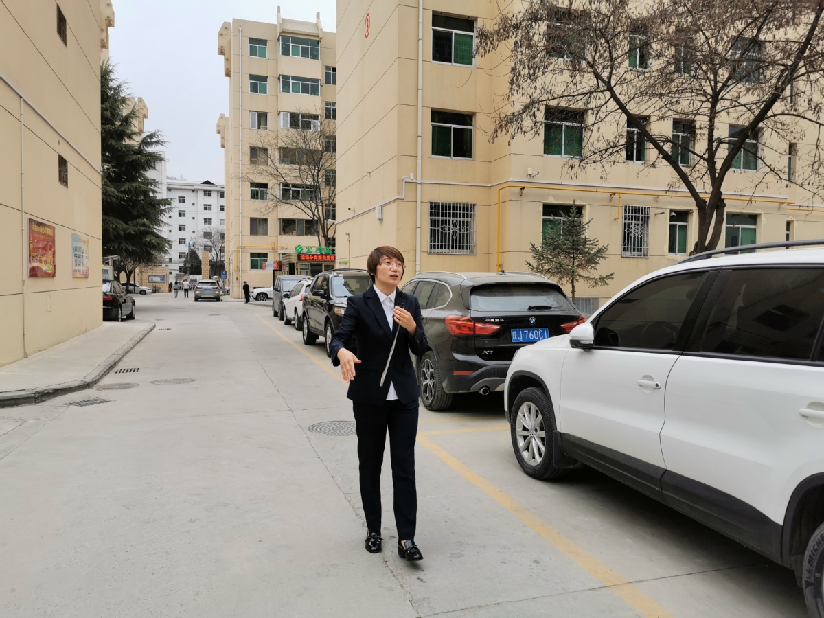 向陽片區(qū)小區(qū)黨總支書記韓慧帶領記者參觀向陽片區(qū)。孫若男 攝