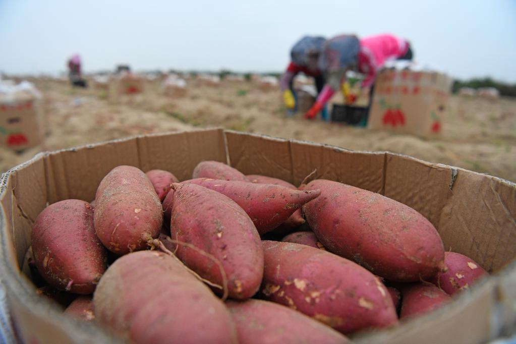 2月9日,在陸豐市碣石鎮(zhèn)滴水村,農(nóng)民在田里收甘薯。新華社記者梁旭 攝