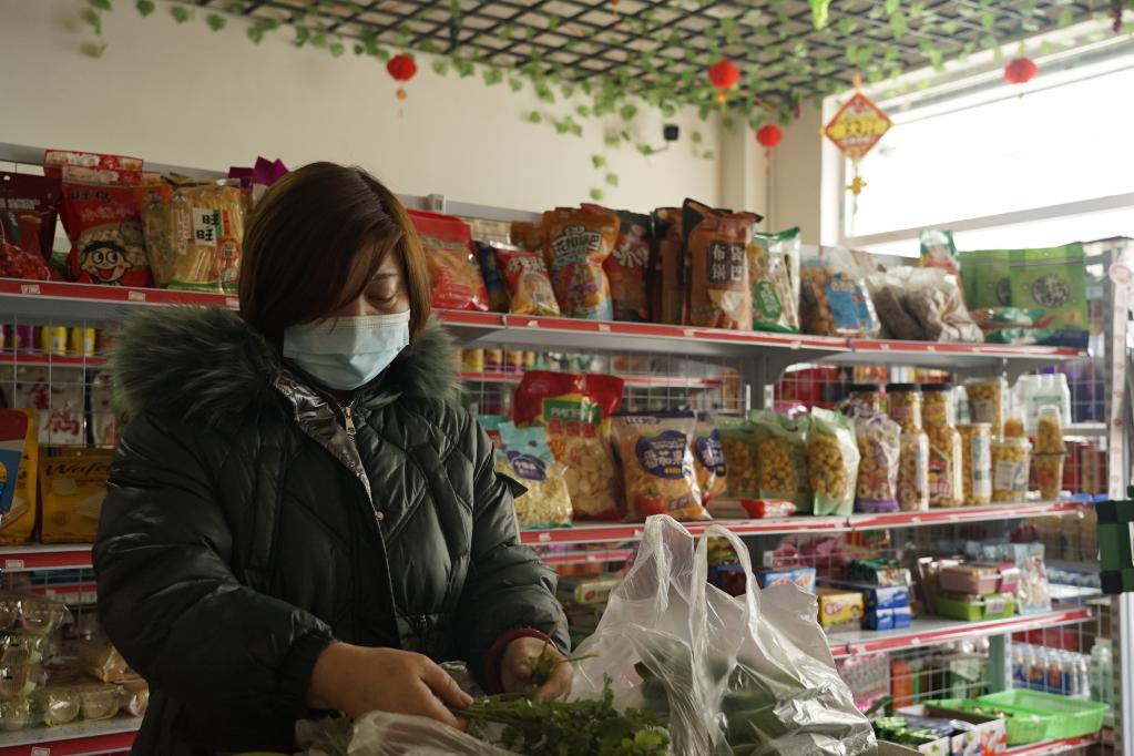 1月27日,超市老板段志英在整理售賣的蔬菜。(新華社記者 陳杰 攝)