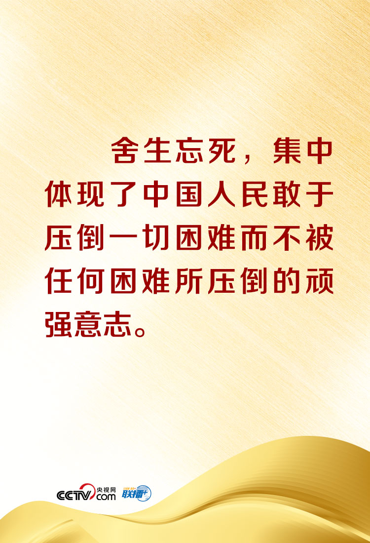 “在這場(chǎng)同嚴(yán)重疫情的殊死較量中,中國(guó)人民和中華民族以敢于斗爭(zhēng)、敢于勝利的大無畏氣概,鑄就了生命至上、舉國(guó)同心、舍生忘死、尊重科學(xué)、命運(yùn)與共的偉大抗疫精神?!笨倳涍€在講話中特別概括、闡釋了偉大抗疫精神,并深刻指出,偉大抗疫精神,同中華民族長(zhǎng)期形成的特質(zhì)稟賦和文化基因一脈相承,是愛國(guó)主義、集體主義、社會(huì)主義精神的傳承和發(fā)展,是中國(guó)精神的生動(dòng)詮釋,豐富了民族精神和時(shí)代精神的內(nèi)涵。央視網(wǎng)《聯(lián)播+》欄目特對(duì)相關(guān)內(nèi)容進(jìn)行梳理,與您共同在偉大精神中感受偉大的力量!