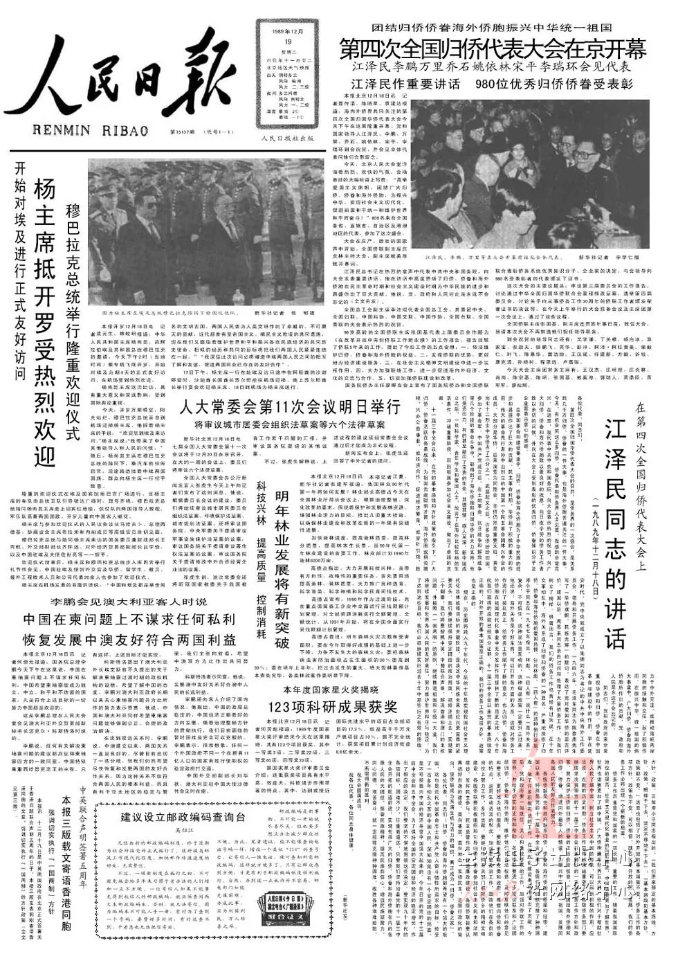 1992年,鄧小平視察南方并發(fā)表重要談話和黨的十四大的召開,標(biāo)志著我國(guó)改革開放和社會(huì)主義現(xiàn)代化建設(shè)進(jìn)入了新的發(fā)展階段。愛國(guó)統(tǒng)一戰(zhàn)線以鄧小平建設(shè)有中國(guó)特色社會(huì)主義的理論為指導(dǎo),圍繞建立社會(huì)主義市場(chǎng)經(jīng)濟(jì)體制,”一國(guó)兩制”方針的貫徹實(shí)施,不斷研究新情況和新問題,充分調(diào)動(dòng)各族各界人士的積極性、主動(dòng)性和創(chuàng)造性,形成了新的氣勢(shì),開創(chuàng)了新的局面。開創(chuàng)我國(guó)僑務(wù)工作新局面中國(guó)是僑務(wù)資源大國(guó),5000多萬海外僑胞廣泛分布在世界各地,3000多萬歸僑僑眷工作、生活在全國(guó)各地。新時(shí)期以來,廣大海外僑胞和歸僑僑眷,成為實(shí)現(xiàn)祖國(guó)統(tǒng)一和民族振興的重要力量。在僑務(wù)工作中,黨和政府始終堅(jiān)持“三有利”原則,即有利于海外僑胞的長(zhǎng)期生存和發(fā)展,有利于發(fā)展中國(guó)同海外僑胞住在國(guó)的友好合作關(guān)系,有利于推進(jìn)我國(guó)現(xiàn)代化建設(shè)、維護(hù)和促進(jìn)祖國(guó)統(tǒng)一。1989年12月,第四次全國(guó)歸國(guó)華僑代表大會(huì)在北京舉行,江澤民代表中共中央和國(guó)務(wù)院發(fā)表重要講話。全國(guó)僑聯(lián)主席張國(guó)基代表上屆委員會(huì)作題為《在改革開放中再創(chuàng)僑聯(lián)工作新業(yè)績(jī)》的工作報(bào)告。國(guó)務(wù)院僑辦主任廖暉宣布了國(guó)務(wù)院僑辦和全國(guó)僑聯(lián)聯(lián)合表彰980名僑務(wù)系統(tǒng)優(yōu)秀知識(shí)分子、企業(yè)家的決定。
