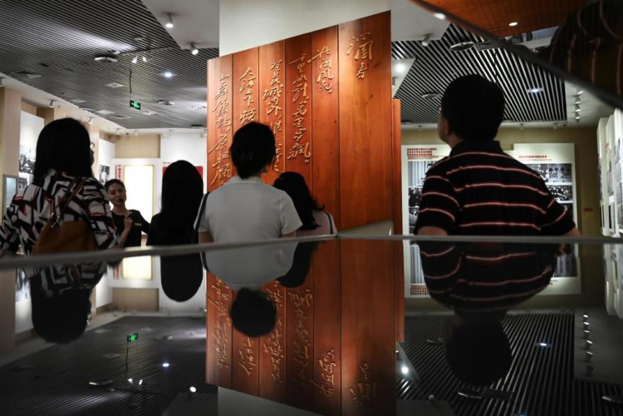 6月21日,媒體記者在位于重慶的中國民主黨派歷史陳列館參觀“三民主義同志聯(lián)合會成立紀(jì)念碑”。