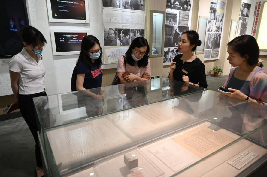 6月21日,媒體記者在位于重慶的中國民主黨派歷史陳列館參觀。