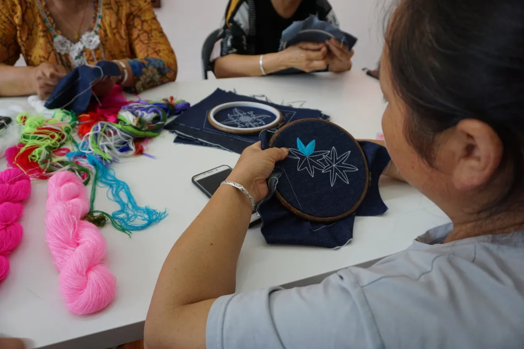 婦女們在藏羌繡夾關(guān)傳習(xí)所里刺繡
