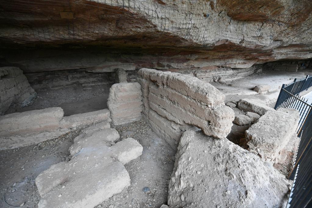 照金鎮(zhèn)薛家寨革命舊址內(nèi)的紅軍寨。新華社記者張博文攝