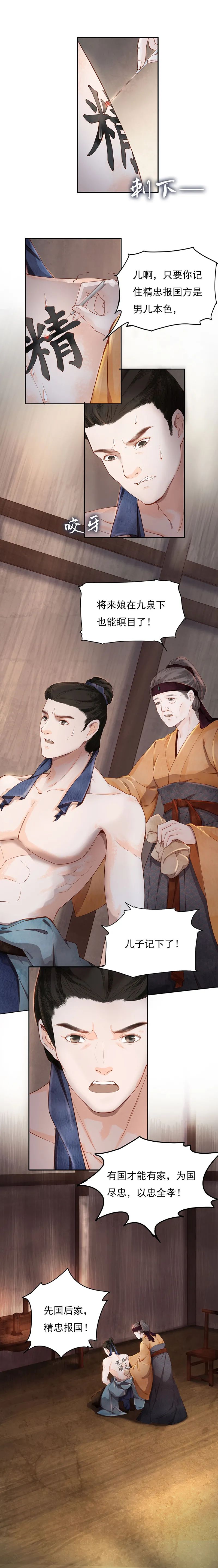 ?。ㄗⅲ骸熬覉?bào)國”的故事最早出現(xiàn)在元朝人編的《宋史》中,四個(gè)字為“盡忠報(bào)國”,未提及是岳母所刺。在清代小說和戲劇中才第一次出現(xiàn)了岳母刺字的情節(jié),字也改成“精忠報(bào)國”。)