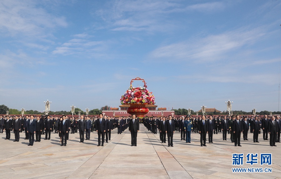 9月30日上午,黨和國家領(lǐng)導(dǎo)人習(xí)近平、李克強、栗戰(zhàn)書、汪洋、王滬寧、趙樂際、韓正、王岐山等來到北京天安門廣場,出席烈士紀(jì)念日向人民英雄敬獻花籃儀式。 新華社記者 鞠鵬 攝