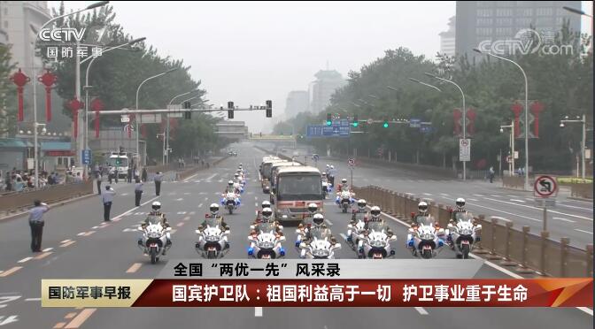 今天的全國“兩優(yōu)一先”風(fēng)采錄讓我們走進(jìn)武警北京總隊(duì)執(zhí)勤第七支隊(duì)國賓護(hù)衛(wèi)中隊(duì)。從1983年組建至今,國賓護(hù)衛(wèi)隊(duì)官兵圓滿完成803位外賓、2522場次的國賓摩托車護(hù)衛(wèi)任務(wù),以零閃失、零差錯、零失誤的成績,踐行著“三鐵”精神?!捌咭弧鼻跋?,這個中隊(duì)的黨支部被授予“全國先進(jìn)基層黨組織”榮譽(yù)稱號。