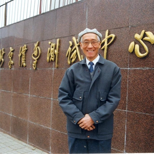 上世紀90年代,陸元九在北京慣導測試中心調(diào)研時在門前留影。新華社發(fā)(中國航天科技集團供圖)