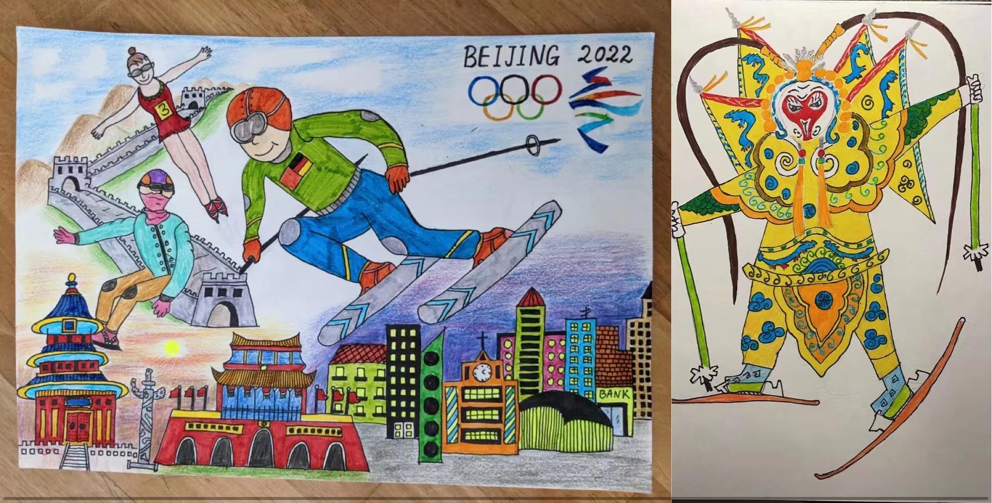 同學(xué)們在繪畫作品上寫滿了“Beijing 2022”“我愛中國”“中國是偉大的國家”“中加手拉手”,表達了他們對北京冬奧會最真摯美好的祝福。