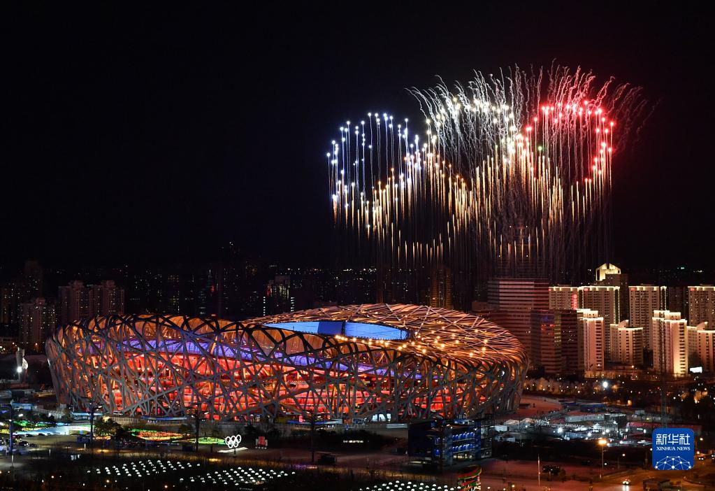 2月4日,第二十四屆冬季奧林匹克運(yùn)動會開幕式在北京國家體育場舉行。這是當(dāng)晚的焰火表演。新華社記者 李鑫 攝