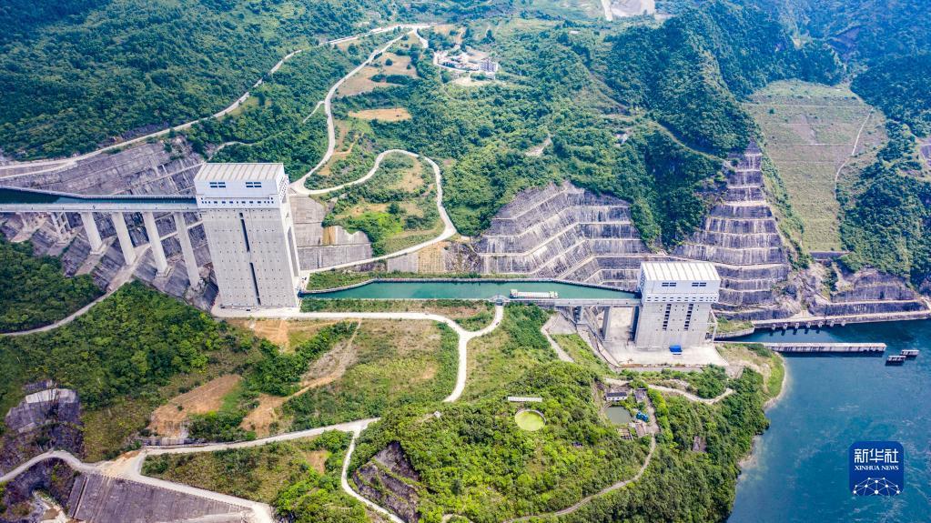 2021年6月投入試運(yùn)行的構(gòu)皮灘水電站配套的通航工程,被視為貴州通江達(dá)海的關(guān)鍵。構(gòu)皮灘通航水頭高差達(dá)199米,采用三級垂直升船機(jī)運(yùn)行,船只通過烏江構(gòu)皮灘水電站都要搭乘“水上電梯”,呈現(xiàn)出“水在空中懸,船在天上行”的奇景。