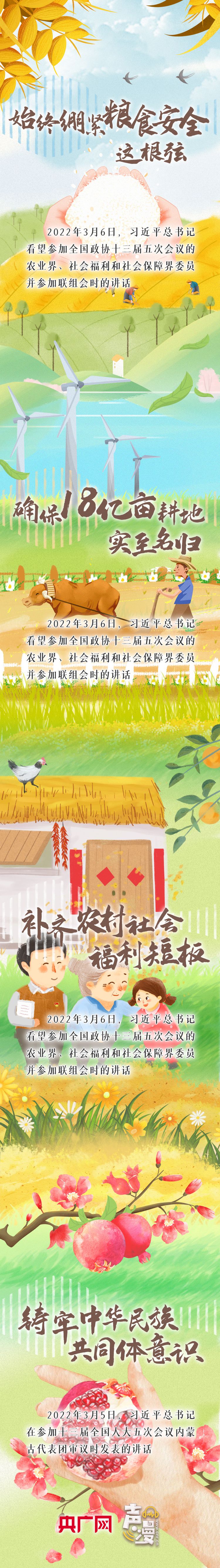 2022年全國兩會期間,習近平總書記多次“下團組”,同代表委員們深入交流、共商國是,“始終繃緊糧食安全這根弦”“確保18億畝耕地實至名歸”“補齊農(nóng)村社會福利短板”“鑄牢中華民族共同體意識”……習近平總書記一系列重要講話,凝聚著人民的心聲,飽含著群眾的期盼,讓我們一起聆聽!
