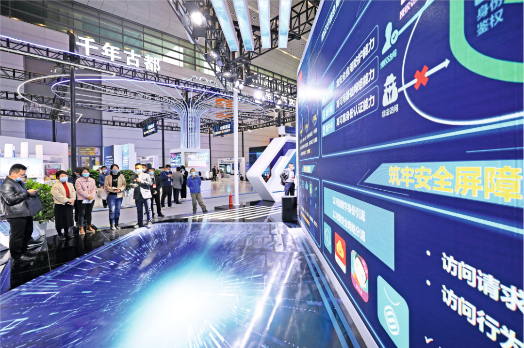 2021年10月11日,陜西西安,觀眾參觀2021年國(guó)家網(wǎng)絡(luò)安全宣傳周網(wǎng)絡(luò)安全博覽會(huì)。